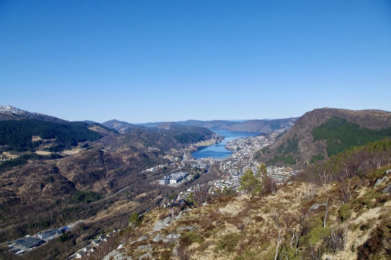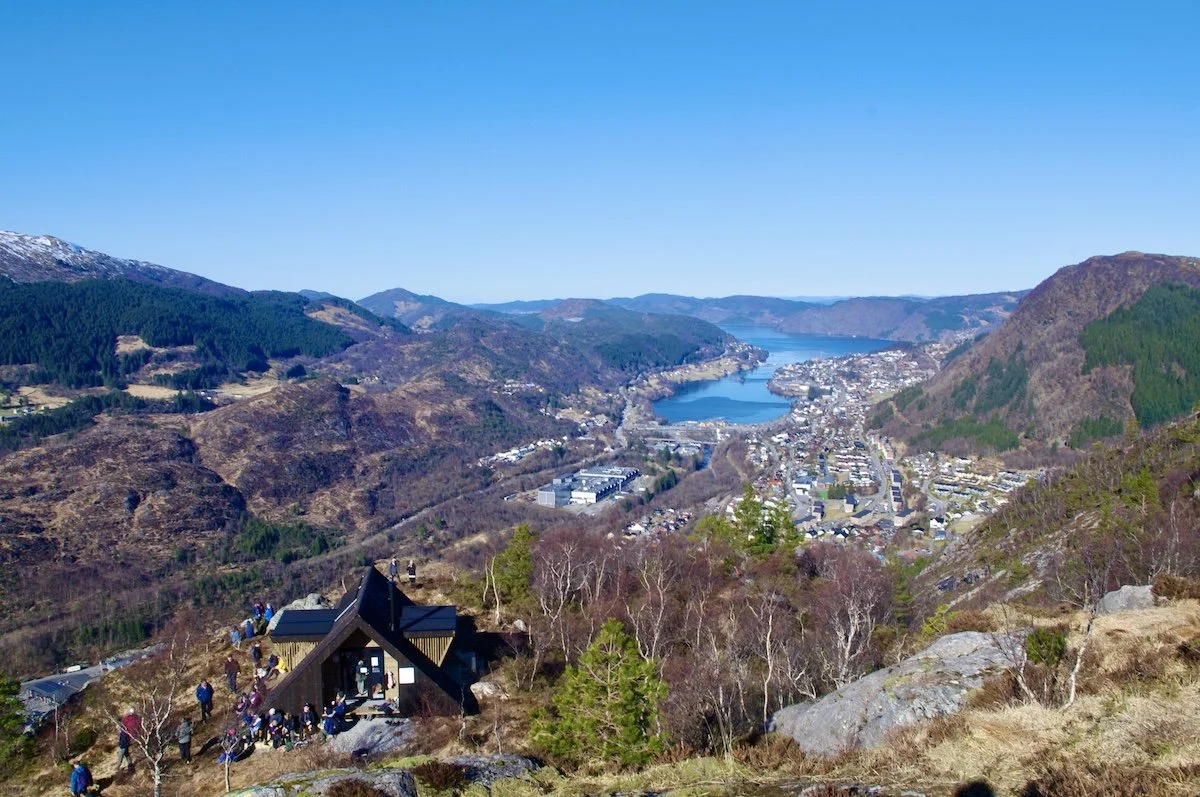 Fantastisk dag og utsikt fra Dagsturhytta Ådnabu mot Indre Arna, Arnavågen, Sørfjorden og fjellene rundt