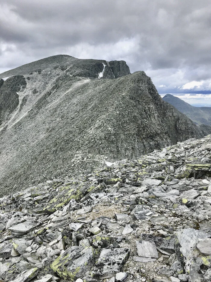 Etter rasten på Firkløvereggen tar vi fatt på den ekstra bratte stigningen de 300 høydemeterne opp til Vinjeronden 2046 moh. Her er det flott utsikt opp til Storronden i sør og Rondeslottet i nord.