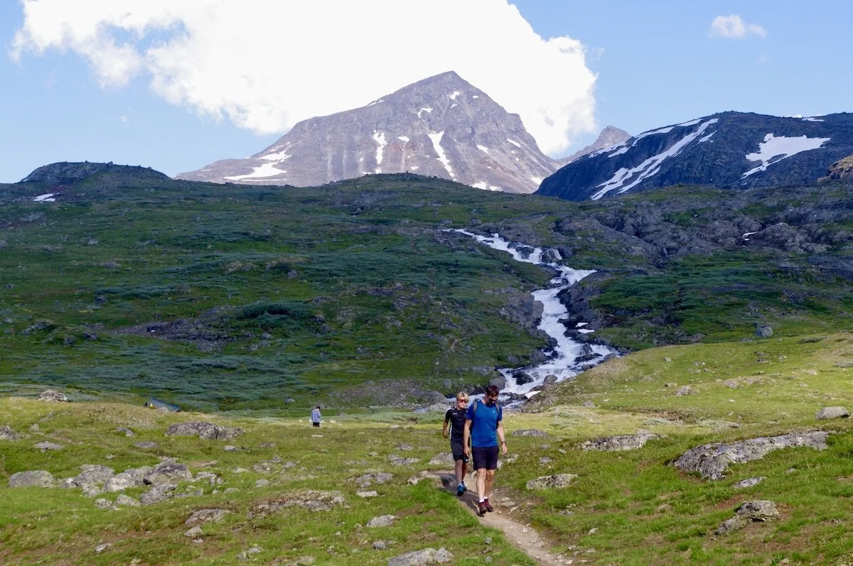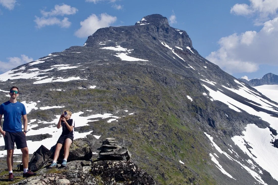 Det er en fin og varm sommerdag midt i juli og vi kjører over Sognefjellet i retning Lom. Ved Krossbu Turisthytte tar vi inn til høyre og videre til venstre på broen over Bøvre og parkerer der på turisthyttens p-plass. Dagens toppturmål er å gå opp på Store Smørstabbtinden 2208 moh. Det spesielle i dag er at turfølget består av 3-generasjons fjellvenner, far, sønn og barnebarn.