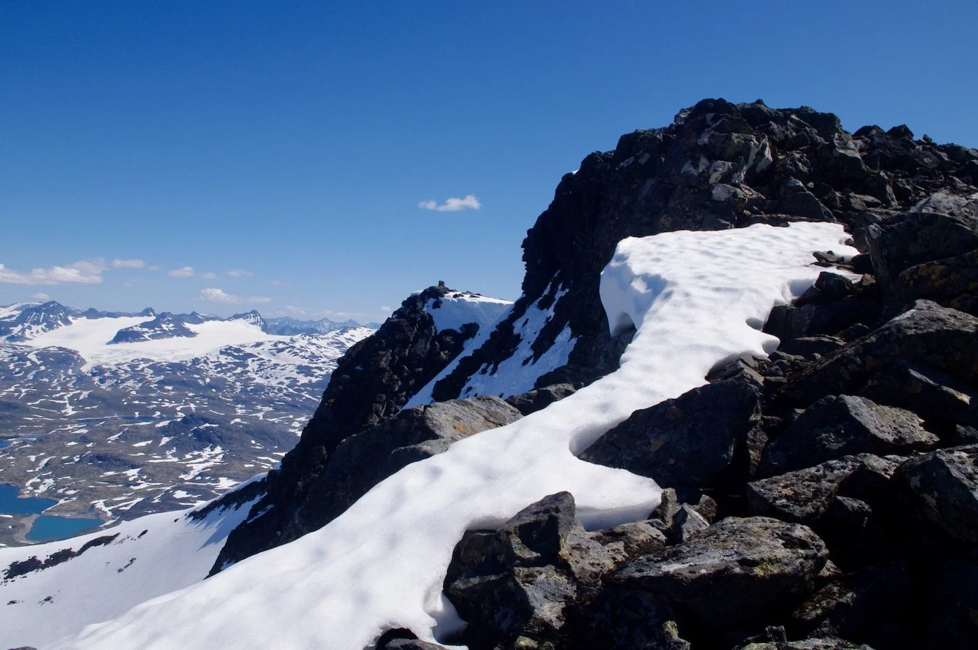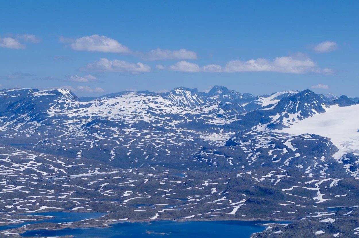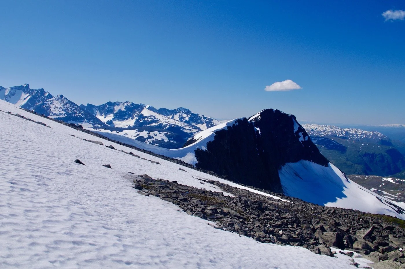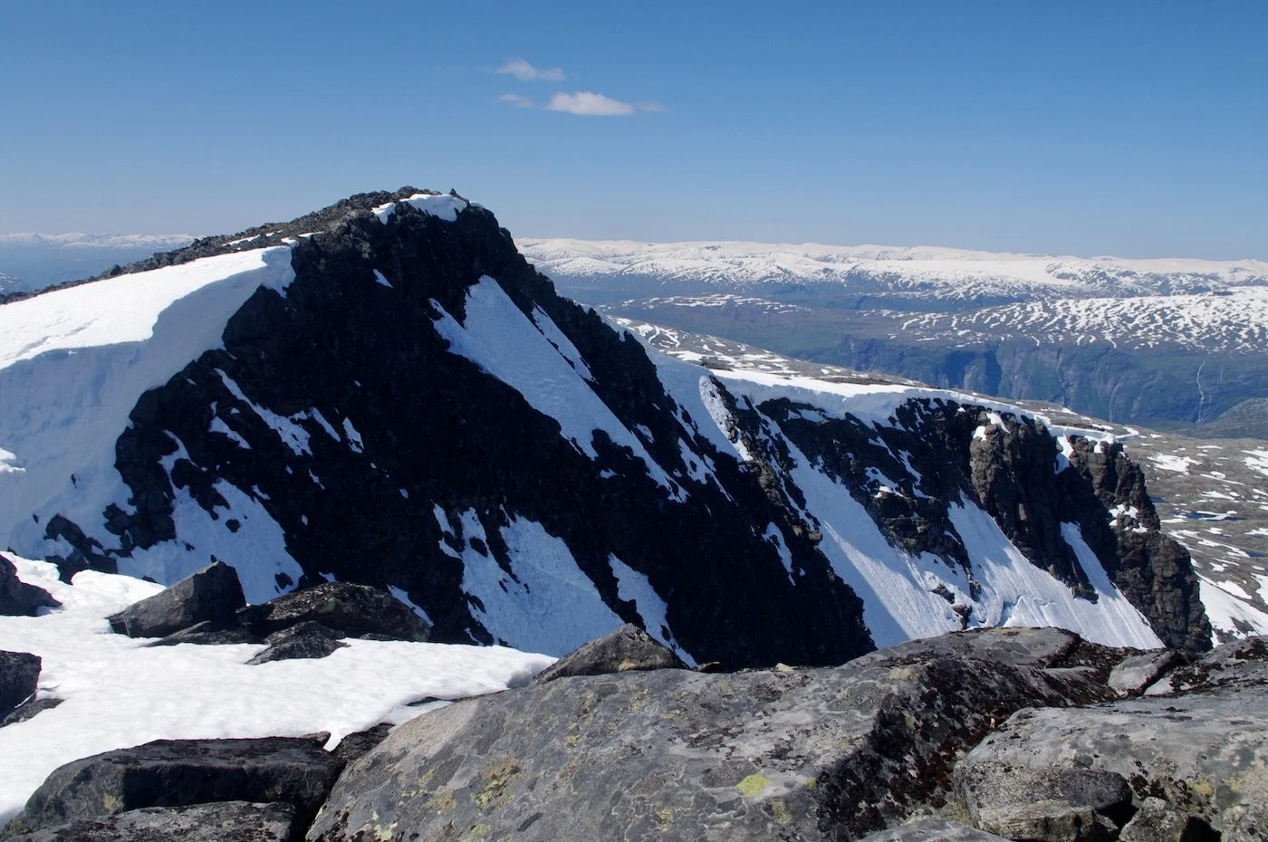 Utsikt fra Store Steindalsnosi 2025 moh. mot fortoppen med liten varde, 2029 moh.