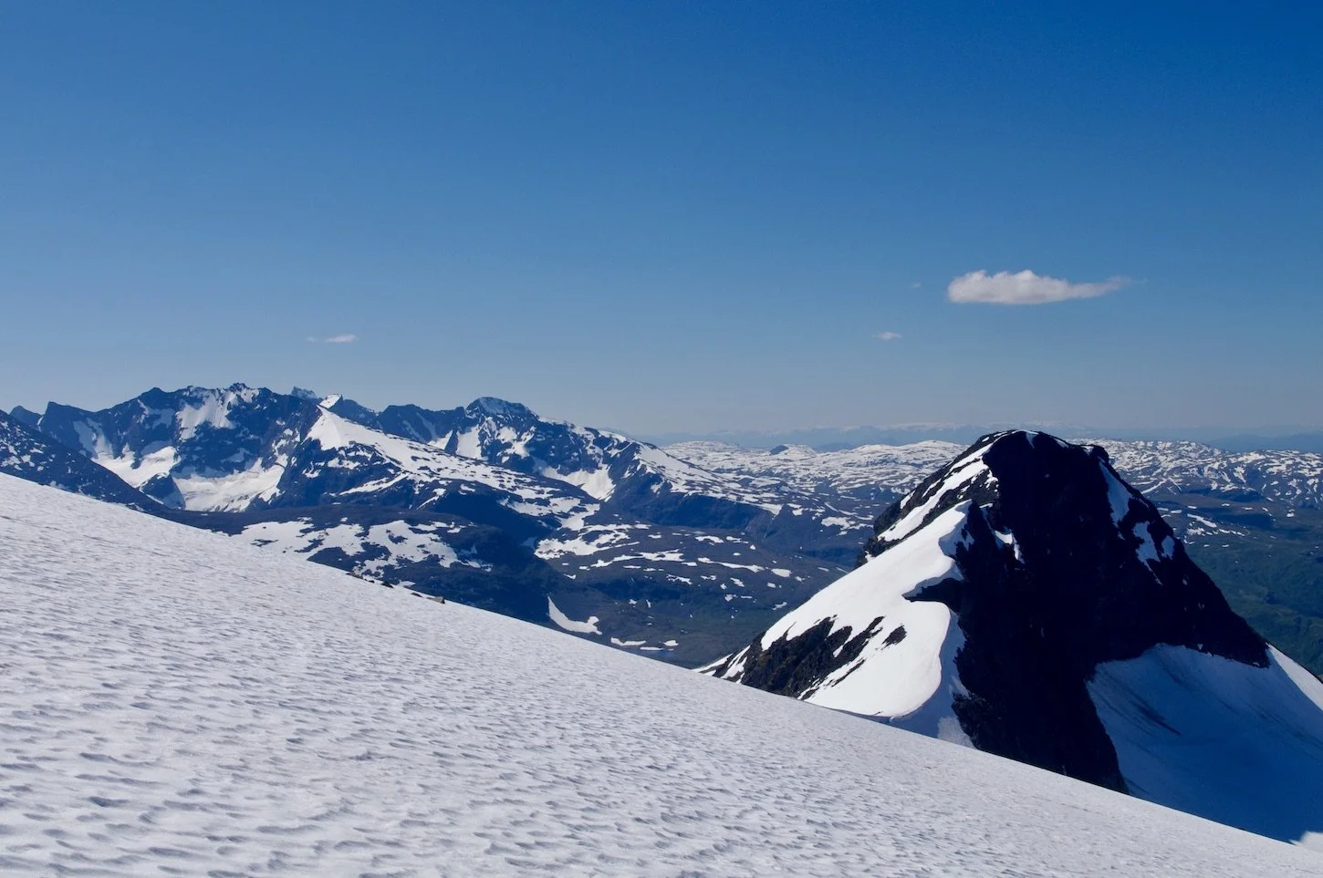 Storfin tindeutsikt fra Store Steindalsnosi med Galdhøpiggen bakerst i bildet