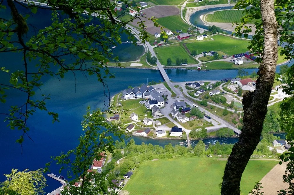 Spektakulær utsikt til Skjolden sentrum fra Vetahovden 530 moh.