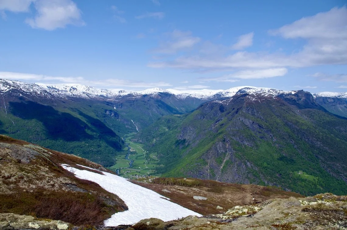 Storflott utsikt fra turens høyeste punkt ca 1000 moh. utover Lustrafjorden mot Luster