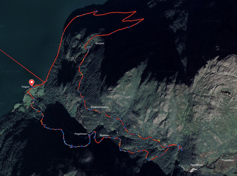Mange takk for en spektakulær bratt og flott fjelltur og rundtur fra Feigum i Luster, over den vakre Feigefossen med sitt 218 meters frie fall, innover Feigedalen til den nye broen over Feigeelvi, med retur via høydegården Bergheim.