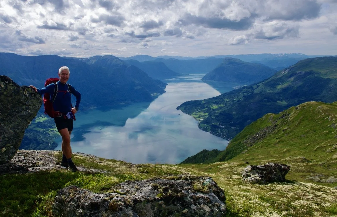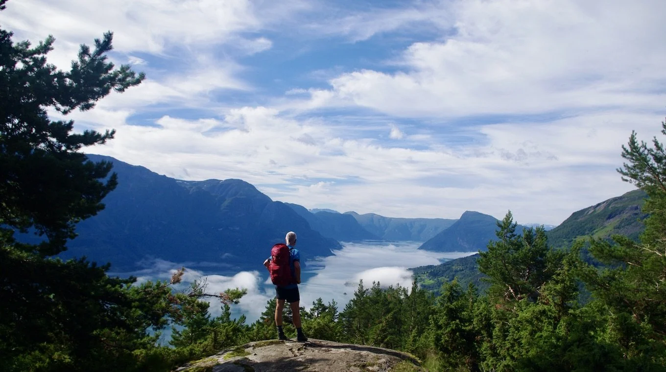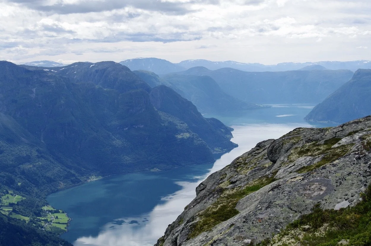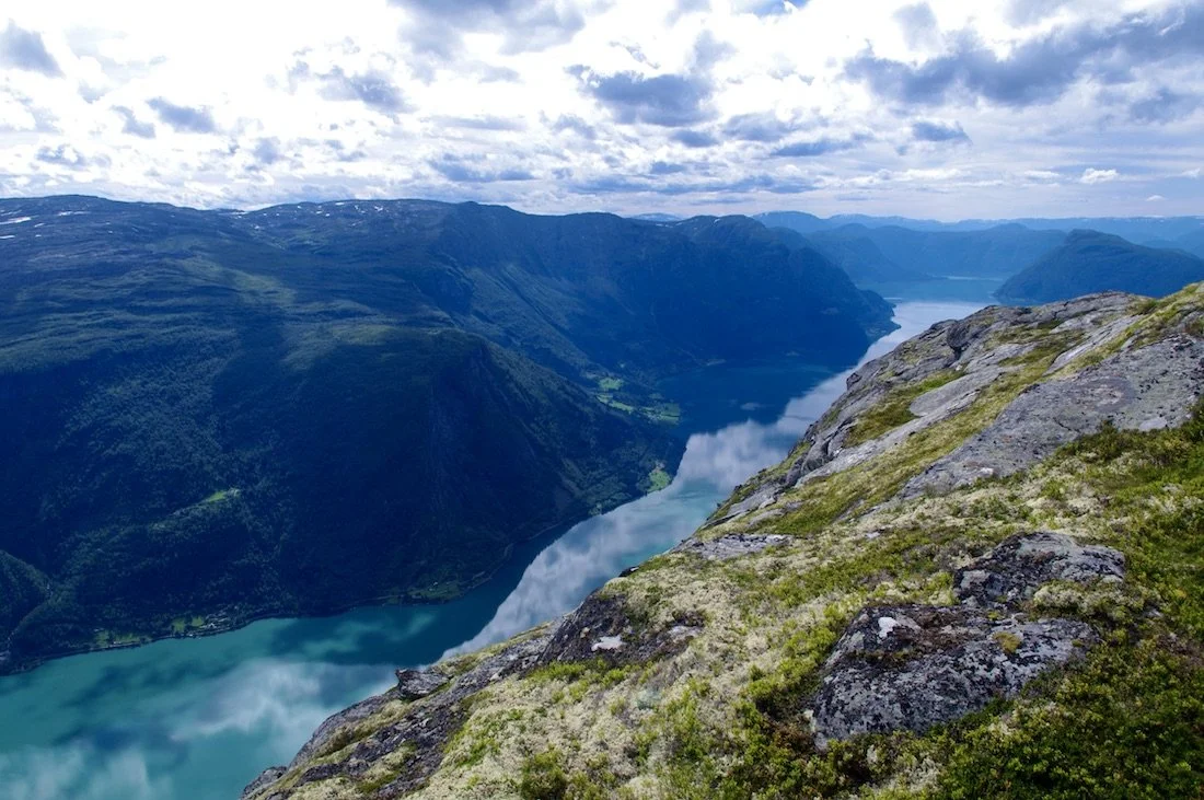 Nydelig utsikt fra “den store utsiktssteinen i horisonten” mot Lustrafjorden