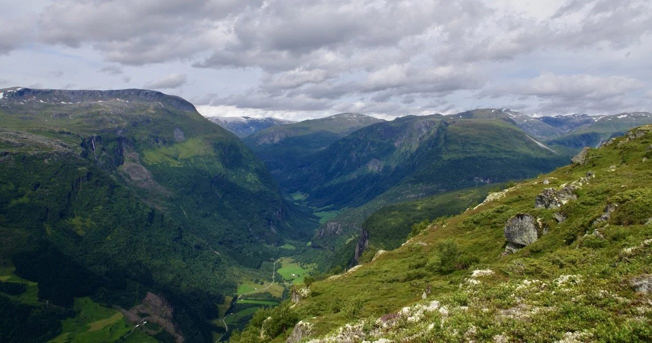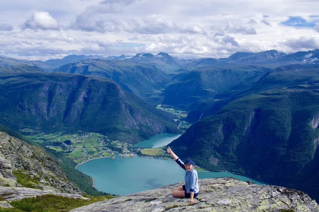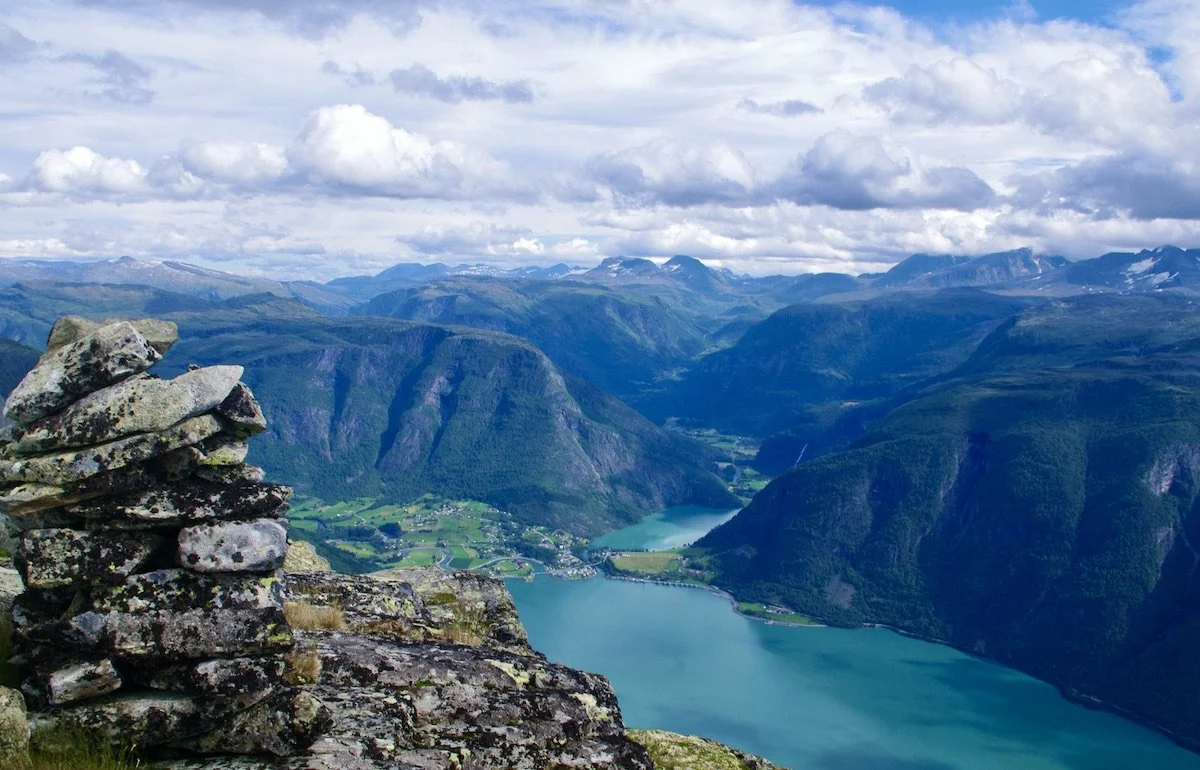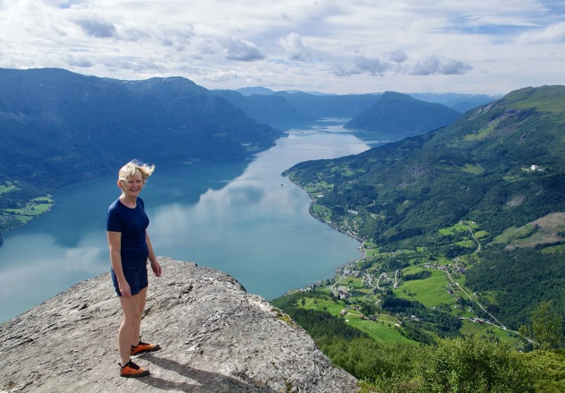 Nydelig utsikt fra “den store utsiktssteinen i horisonten” mot Lustrafjorden