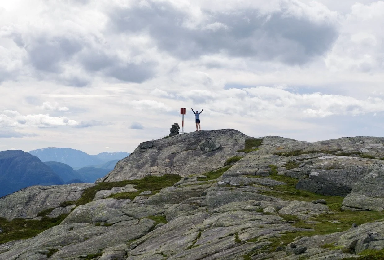Toppvarden på Fjøsnanosi og storflott utsikt