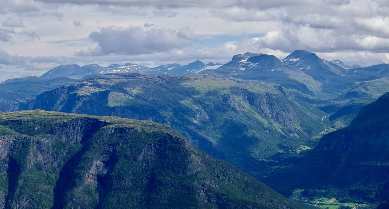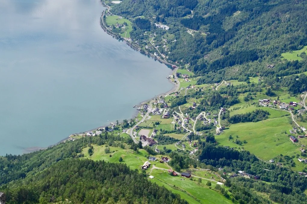 Panorama Luster og Lustrafjorden fra luftige Børesteinen
