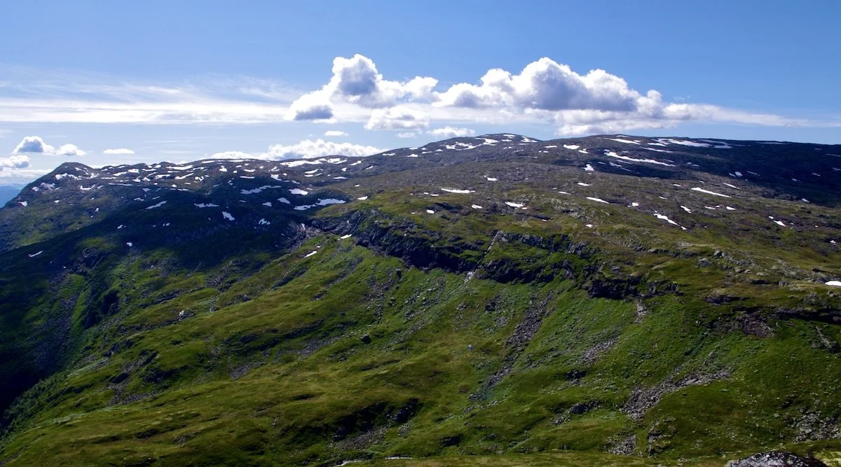 Utsikt fra Skjolden opp mot Haugsnosi 1240 moh.
