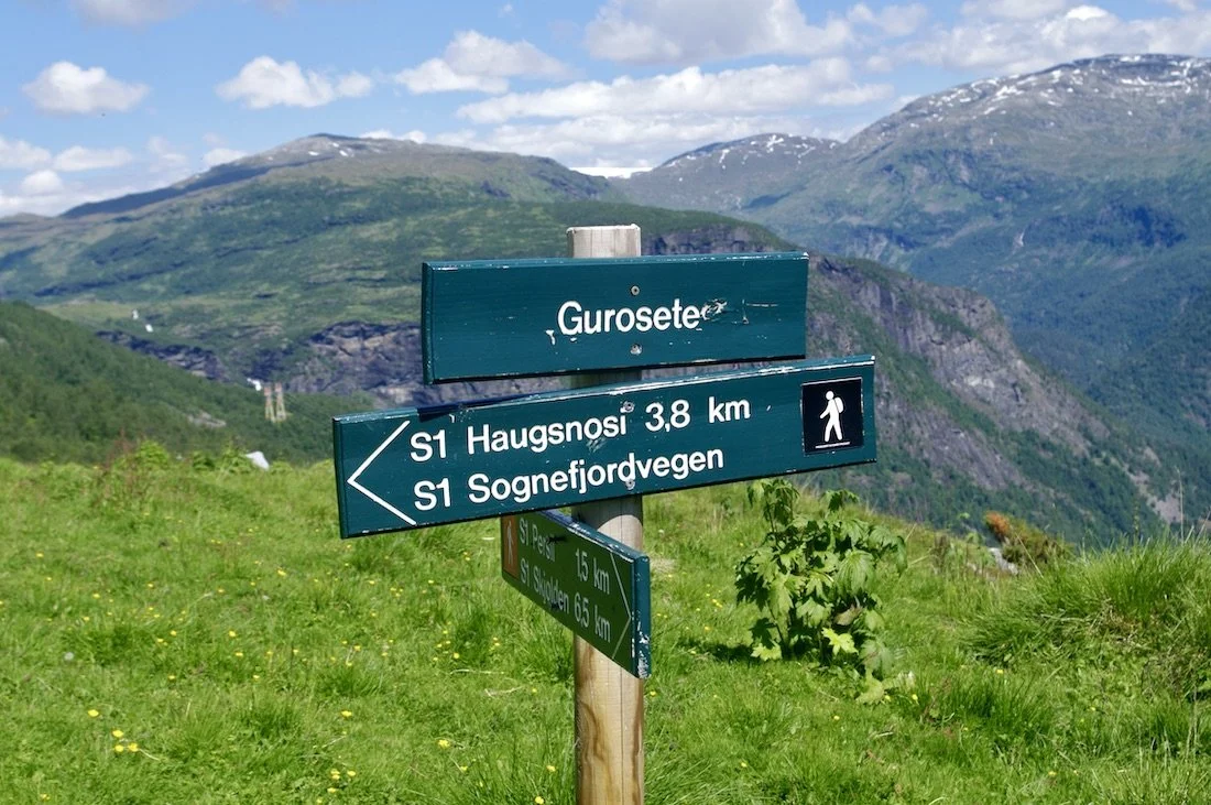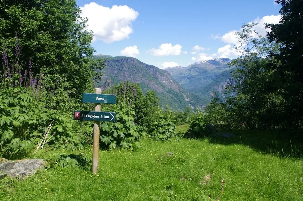 Turskilt med pil i retning mot stølene Persli og Gurosete