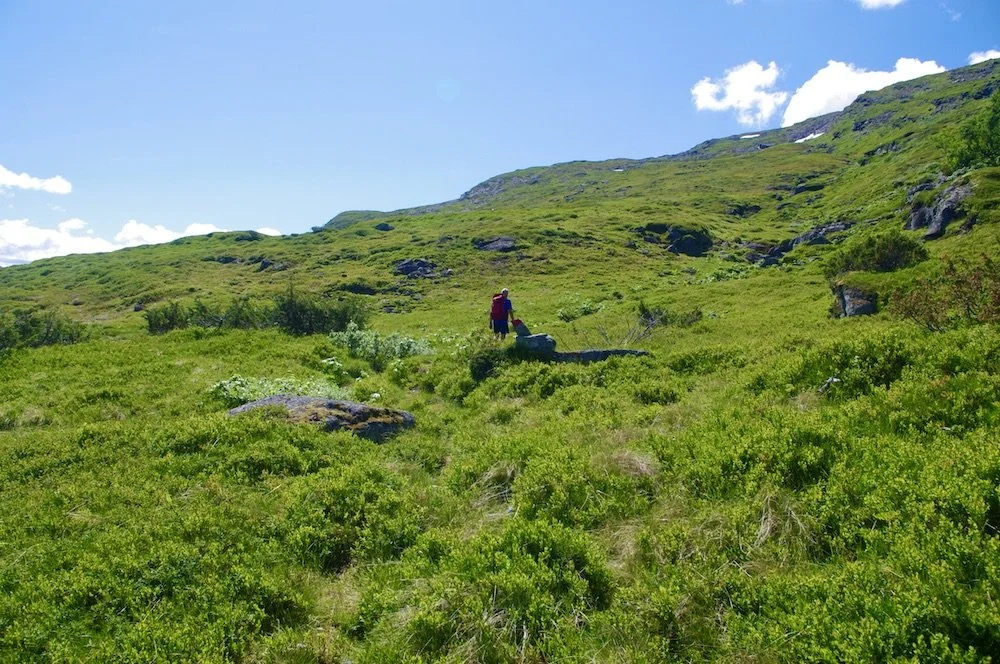 Frodig terreng ved Herburshelleren på vei til Haugsnosi via stølene Persli og Gurosete
