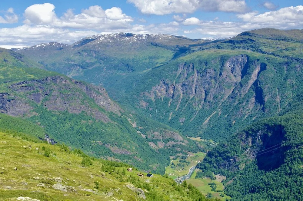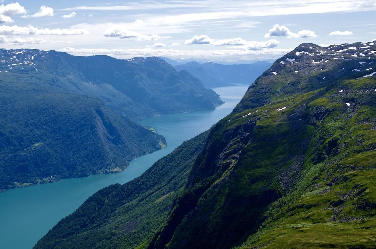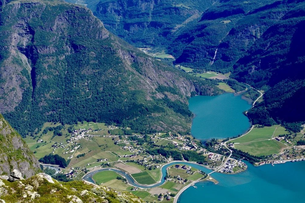 Utsikt fra stupkanten under Haugsnosi mot Skjolden