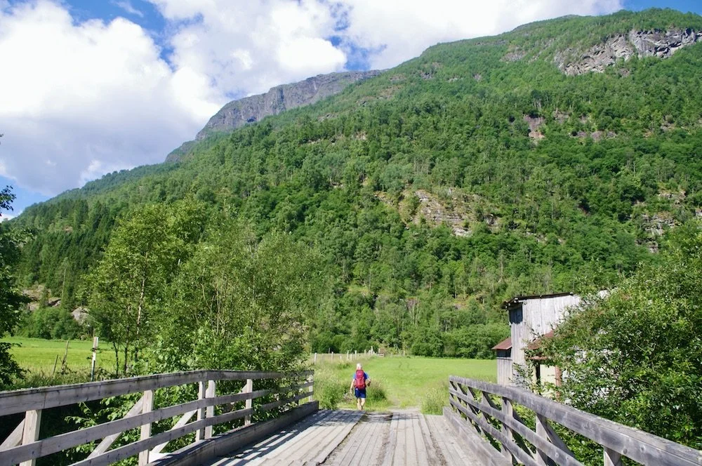Det er en nydelig sommermorgen i Luster og vi kjører Lustravegen til Skjolden og tar der inn til venstre på Mørkridsvegen, og etter et par kilometer innover dalen er vi fremme på turparkeringen ved veikrysset med Bolstadvegen og parkerer der. Dagens turmål er å gå opp til utsiktstoppen Haugsnosi 1240 høydemeter over Skjolden, via stølene Persli og Gurosete.