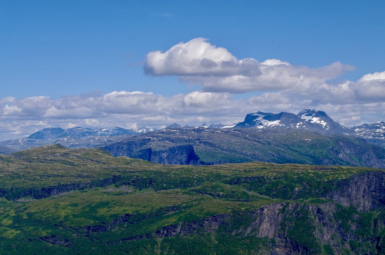 Utsikt mot Gurosete, Mørkri og Mørkridsdalen fra stien mot Haugsnosi