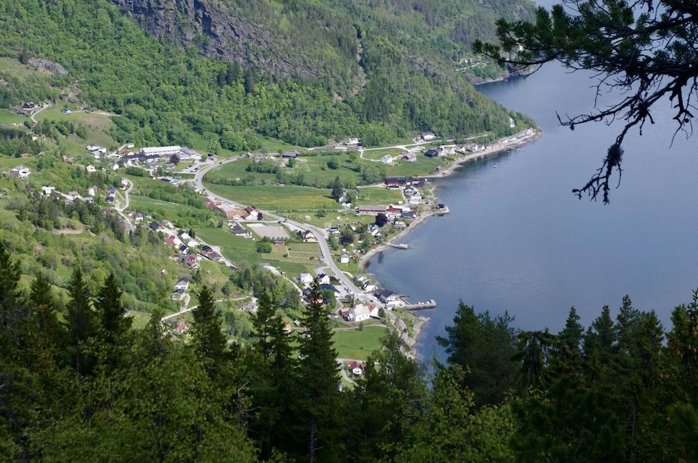 Nydelig utsikt til Luster fra stien rundt Hærishovden