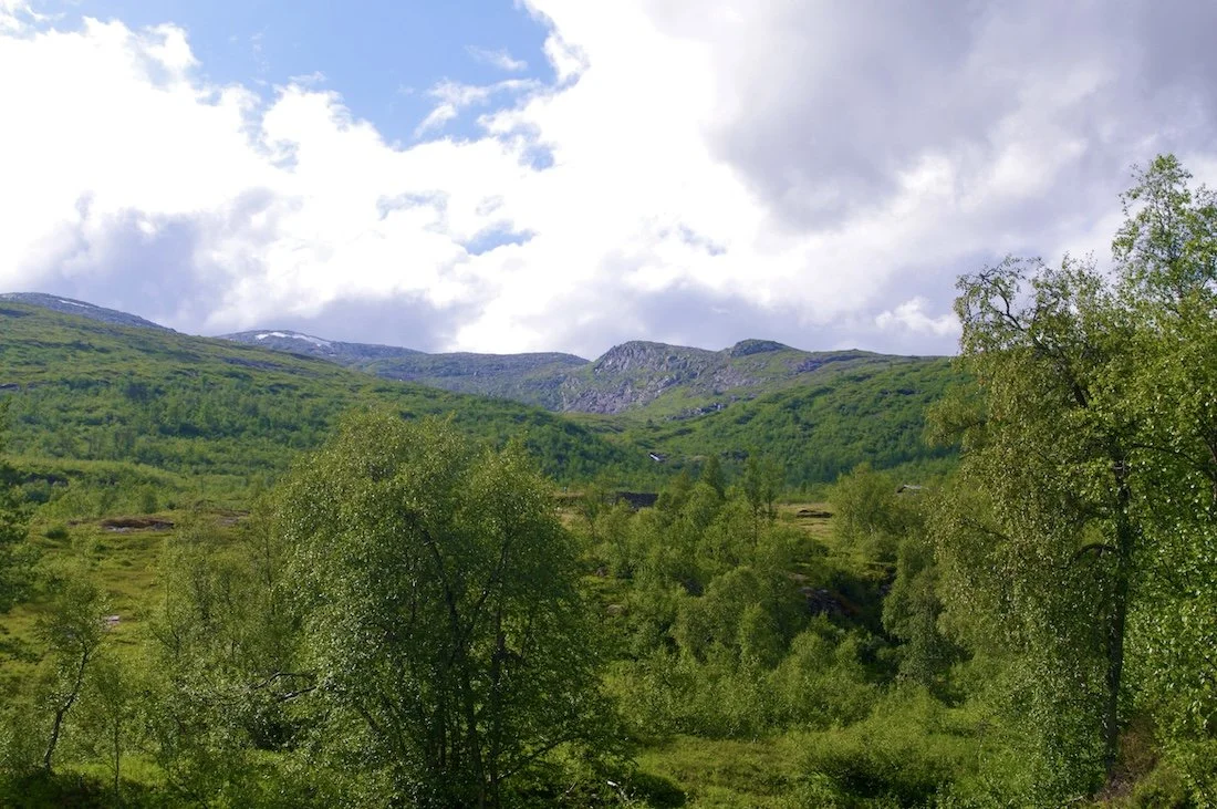 Nydelig fjellbjørk og vakre omgivelser mot Hest og Såta fra Høyde 916