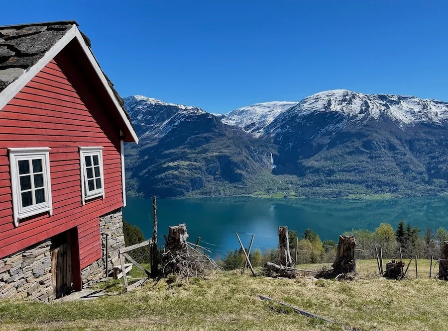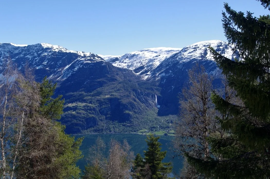 Storfin rasteplass på Haldesås med strålende utsikt til Lustrafjorden og Feigefossen