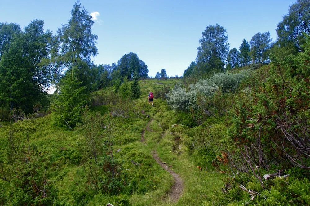 Tydelig sti gjennom mykt terreng mot Skoganipa