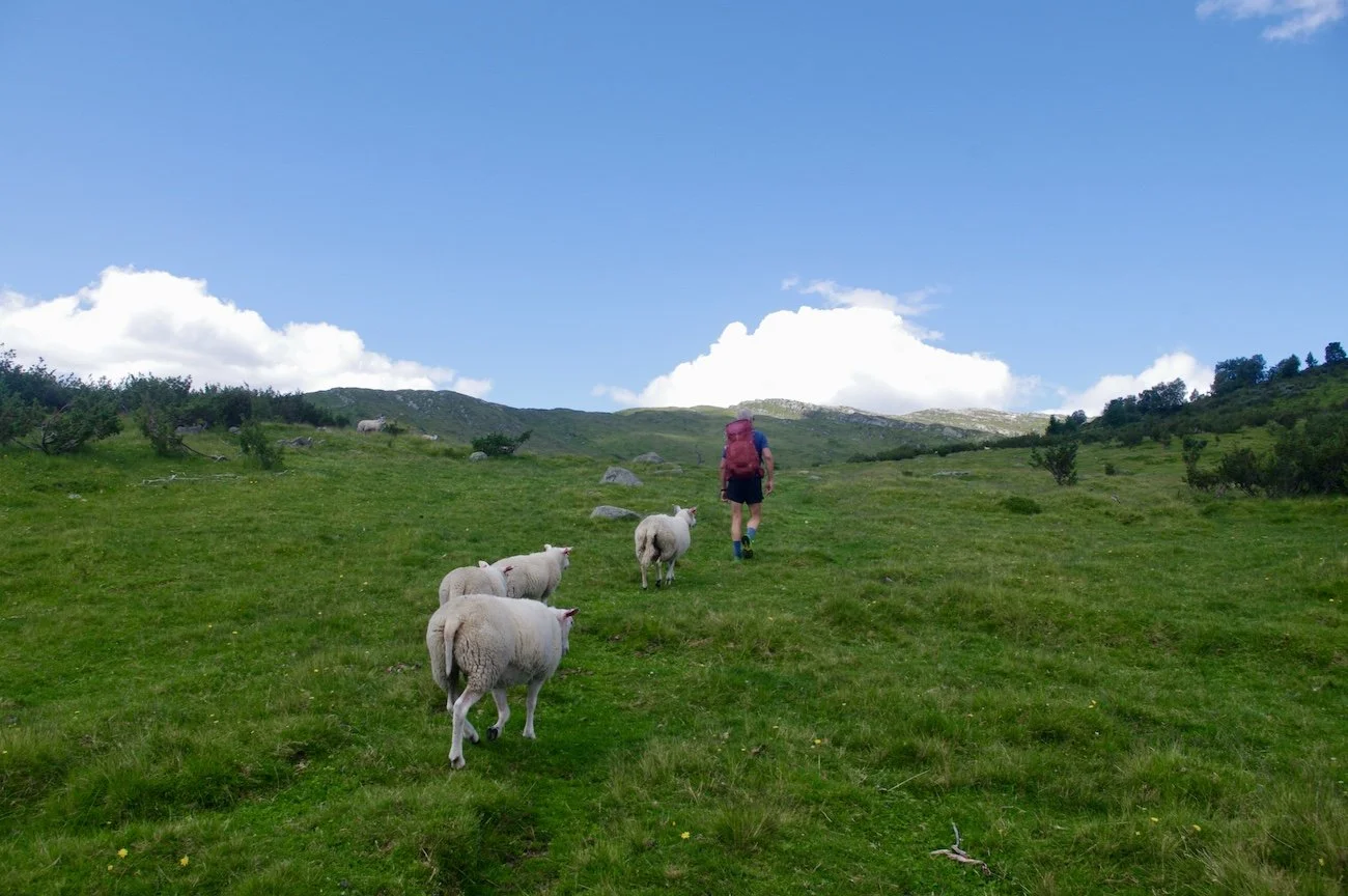 Gode beiteområder og vennlige beitedyr på vei mot Skoganipa