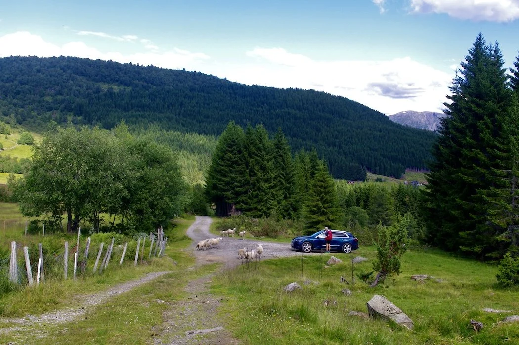 Det er en fin sommerdag i juli og vi kjører Lustravegen til Indre Hafslo. Der tar vi av til høyre ved Veum, mot Bruheim. Deretter følger vi bomveg opp til Dale og Dalestølen, og parkerer på turparkeringsplassen som også er stistart for dagens fjelltur til Skoganipa 1255 moh.