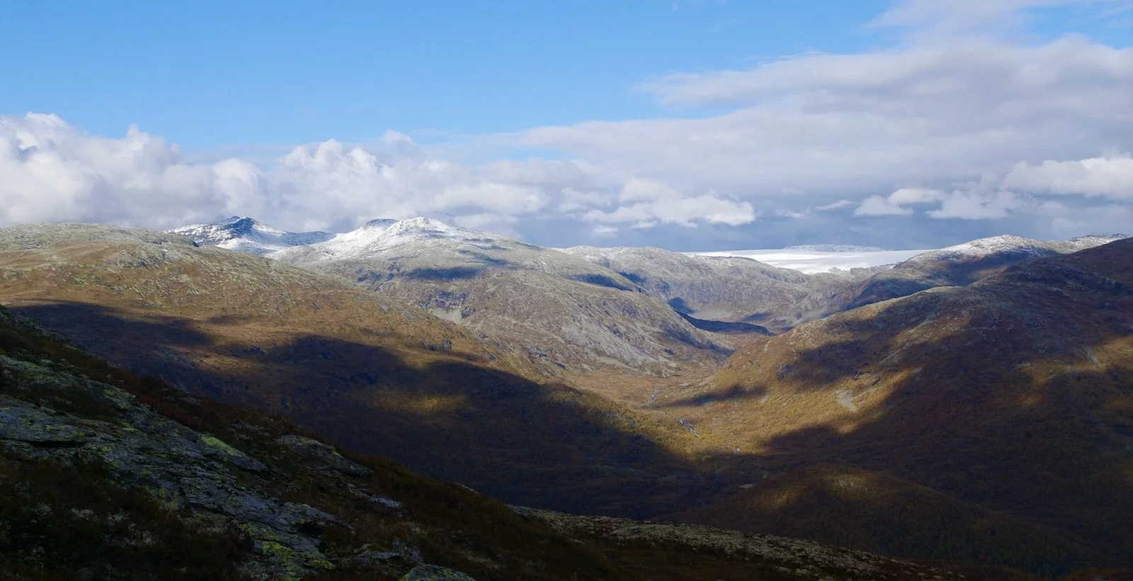 Utsikt fra under Vågsberget mot Jostedalsbreen til Brenibba og Lodalskåpa