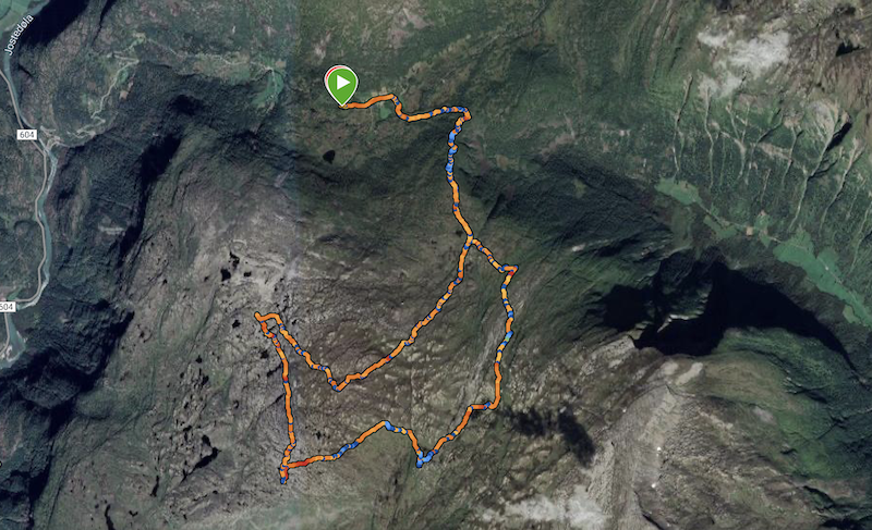 Kartutsnitt med vår rute i ©Sports Tracker - ©Kartverket